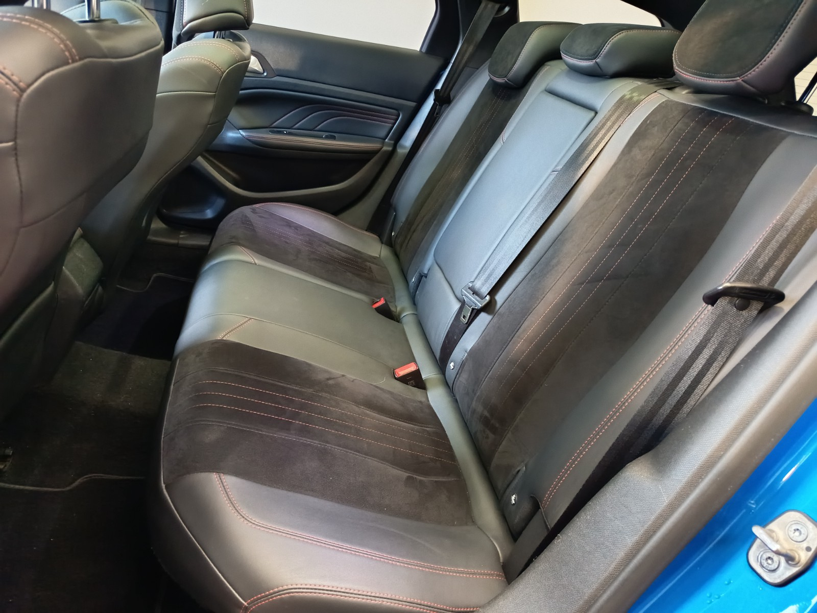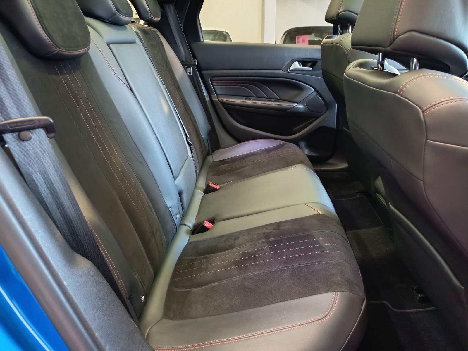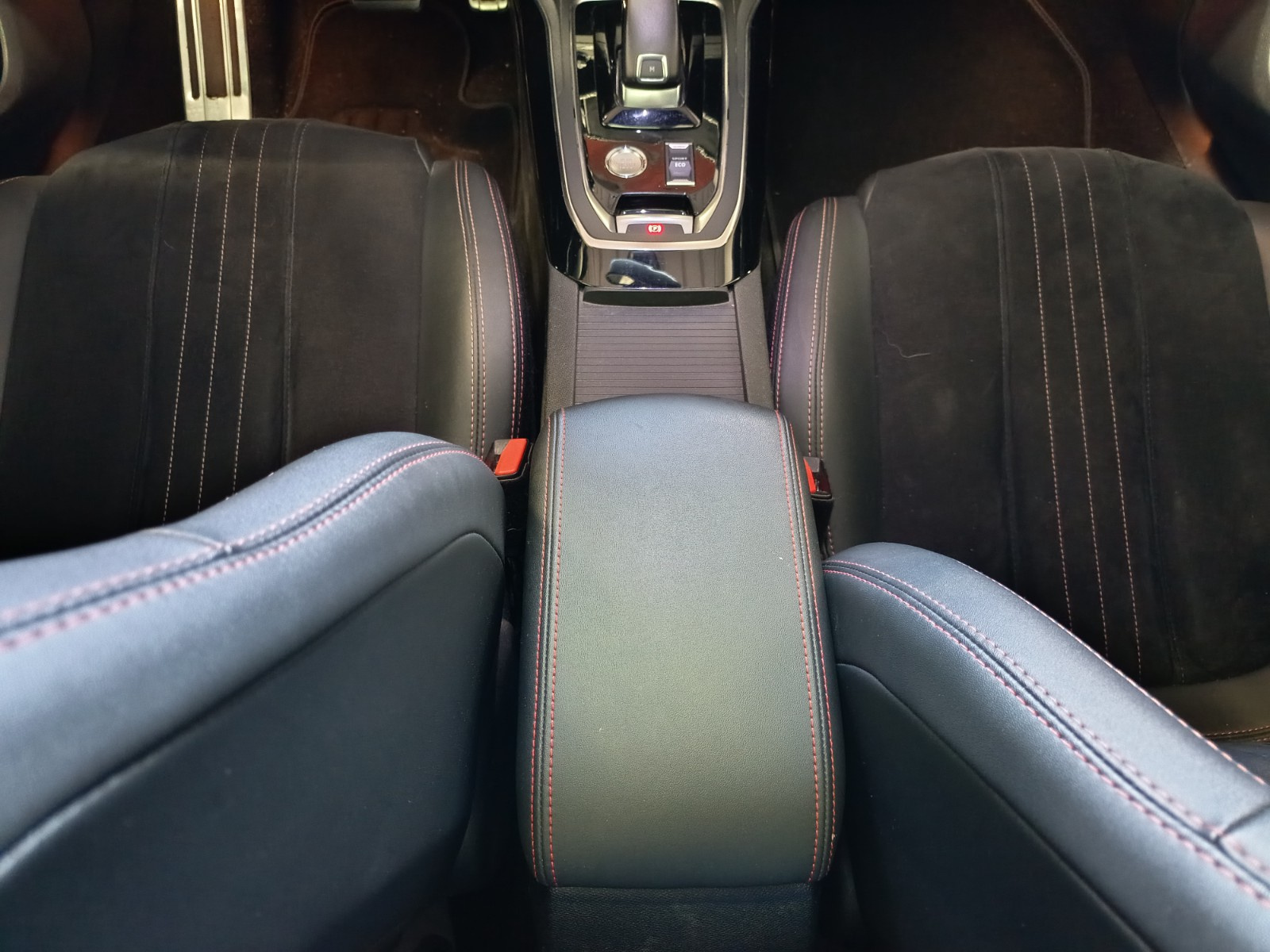 - Sellerie cuir/tissu avec surpiqures rouges