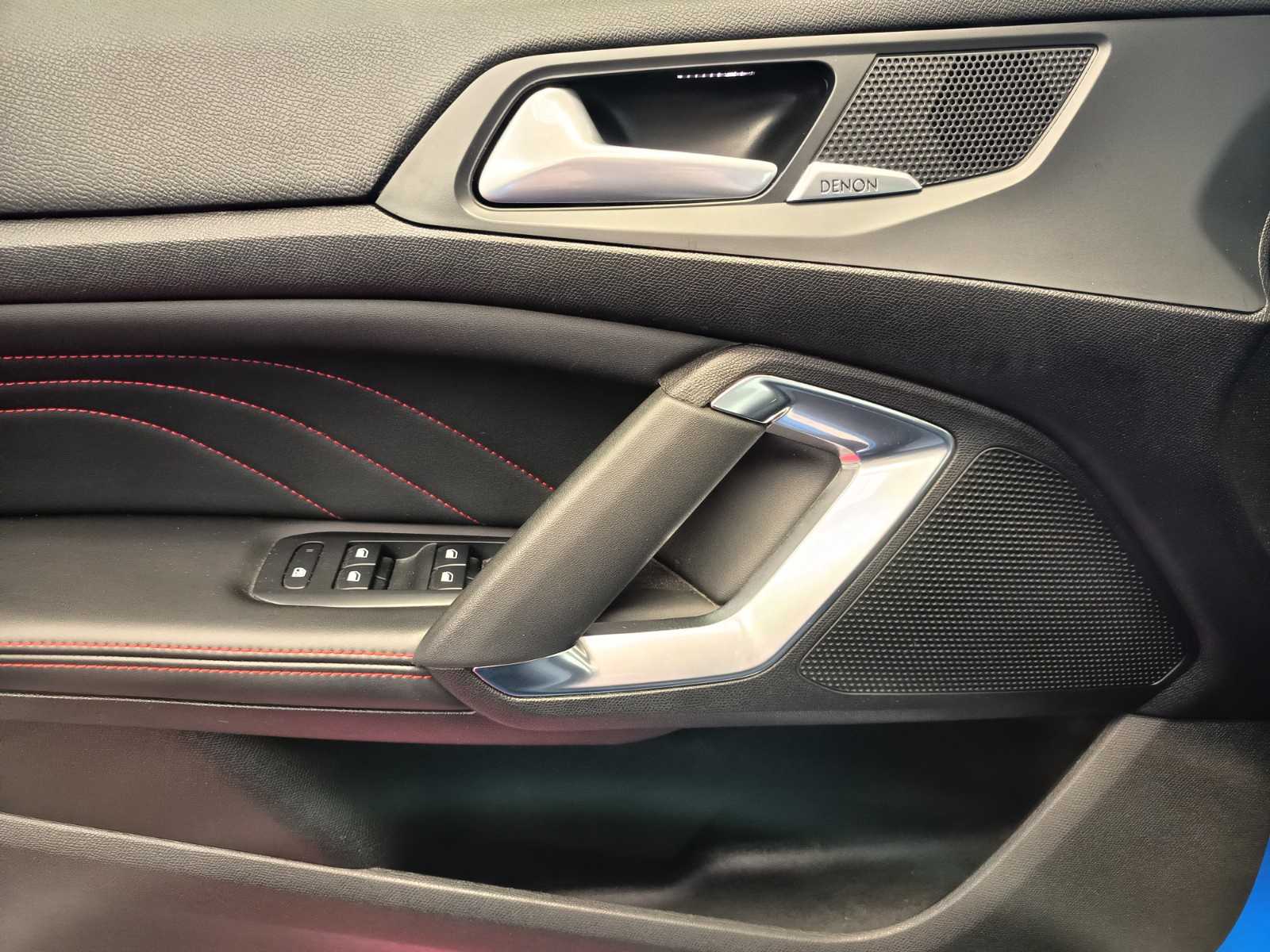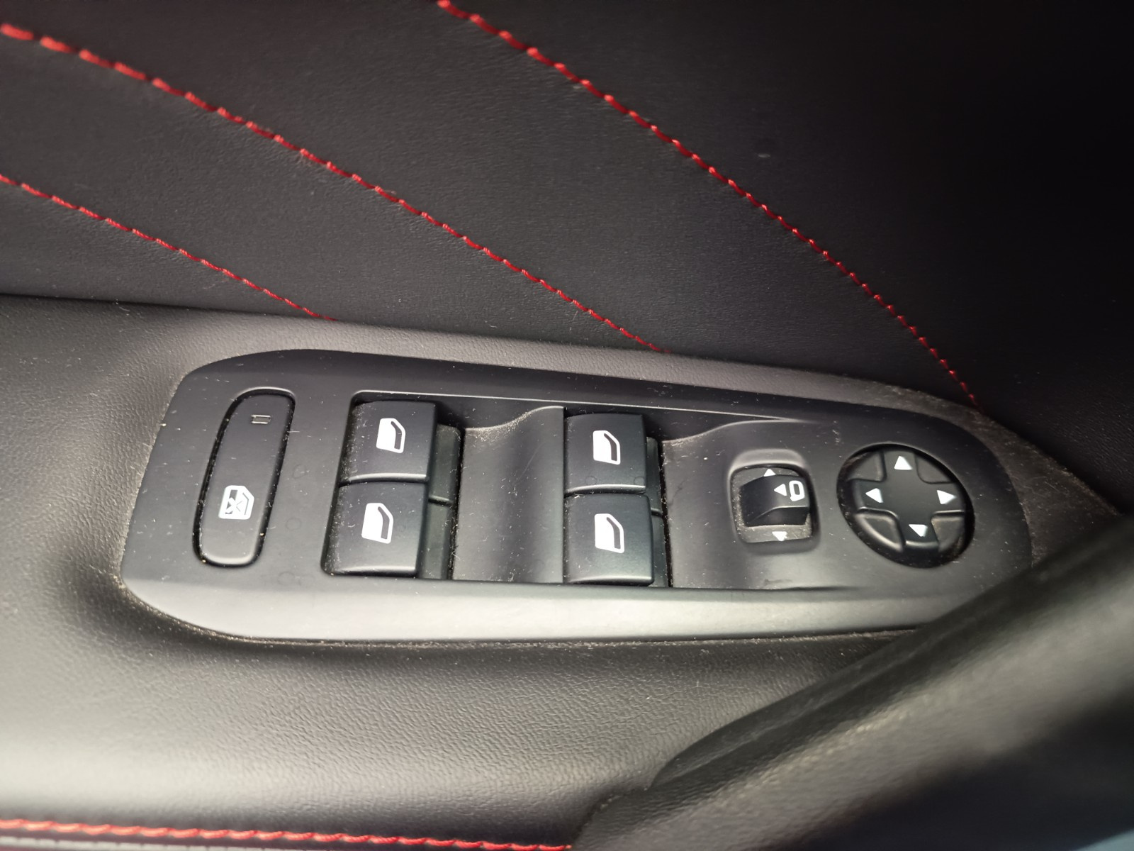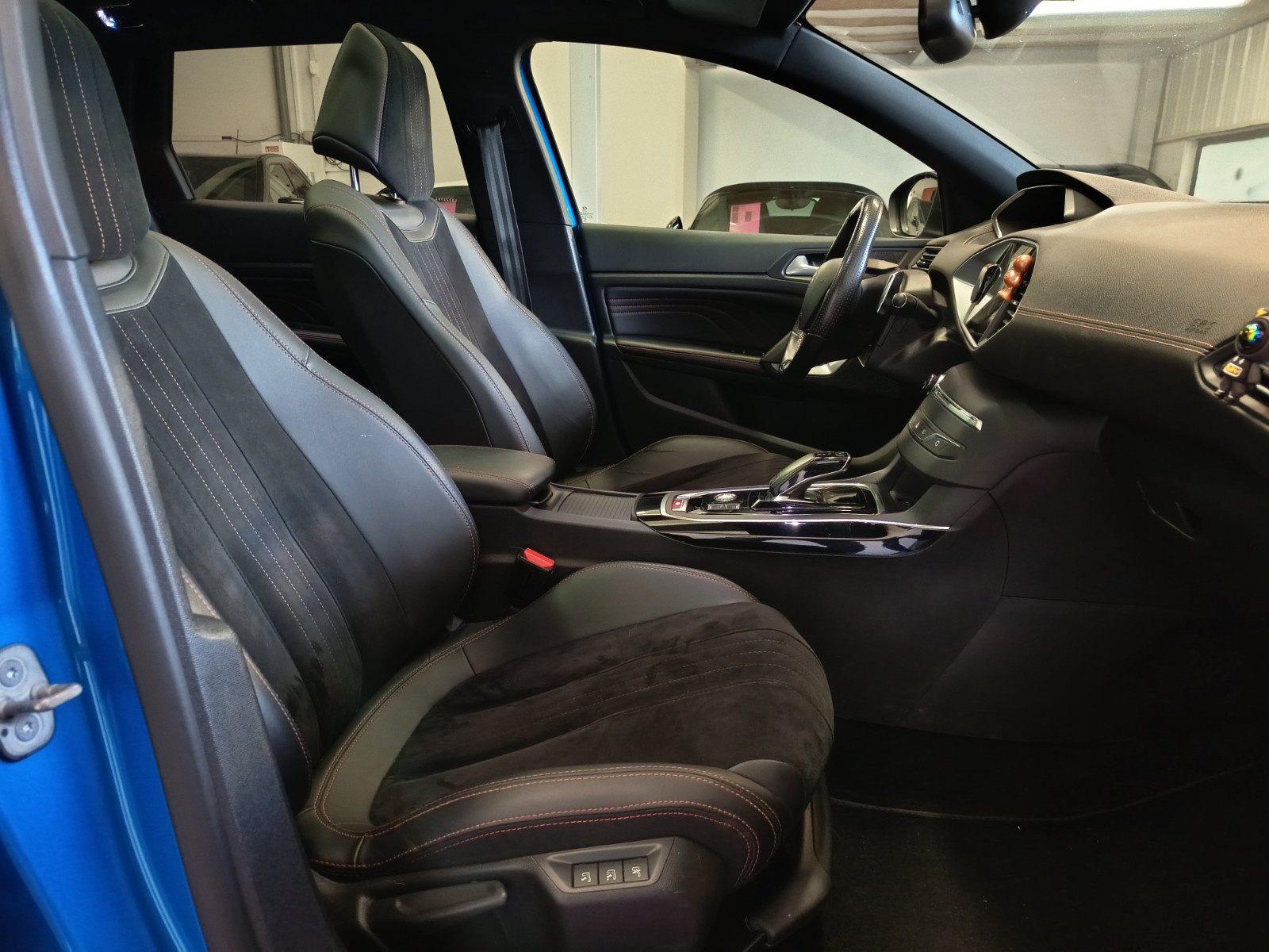 - Sellerie cuir/tissu avec surpiqures rouges