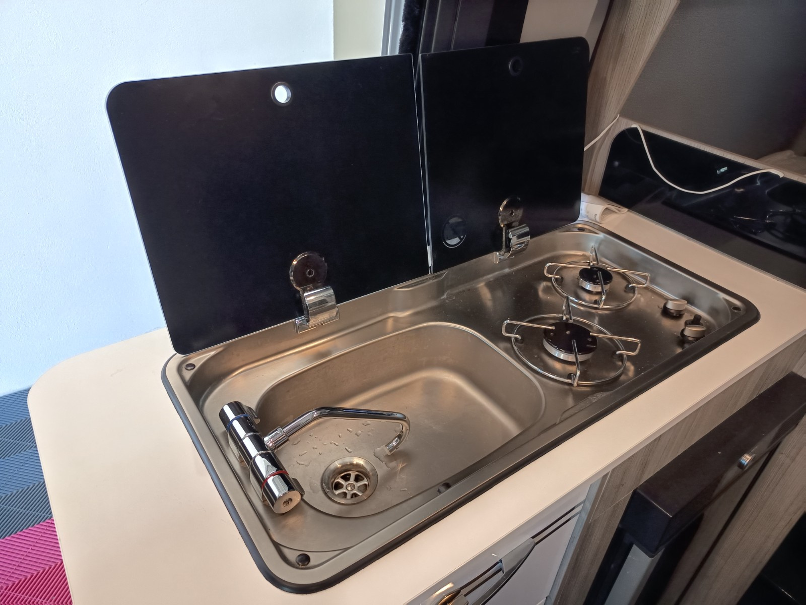 - Nombreux tiroirs et portes pour le rangement